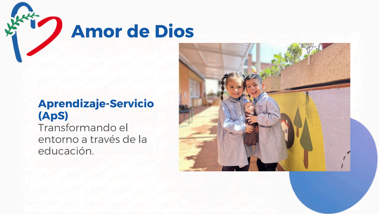 Aprendizaje y ServicioIncluimos el compromiso social en la enseñanza competencial, de tal manera que nuestros alumnos sean capaces de cambiar la mirada, traspasando sus propias necesidades y deseos, fomentando una ciudadanía inclusiva donde el protagonista sea el prójimo.
